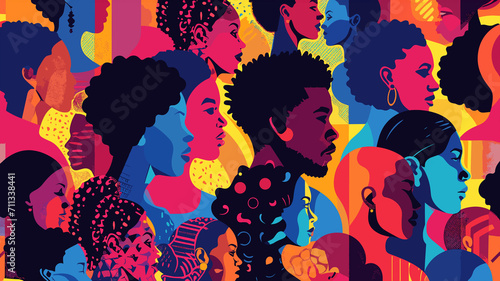 Abstract African people silhouettes in profile as Black History Month concept illustration