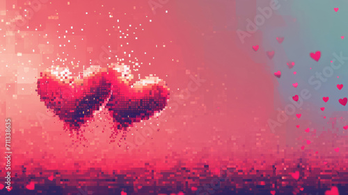 Red and pink love hearts as retro video game pixel art for Valentines Day