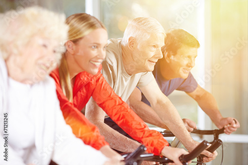 Gruppe Senioren beim Spinning im Fitnesscenter