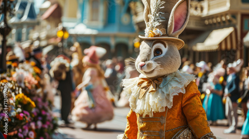 Whimsical Easter bunny baker presenting festive treats in a cozy bakery setting