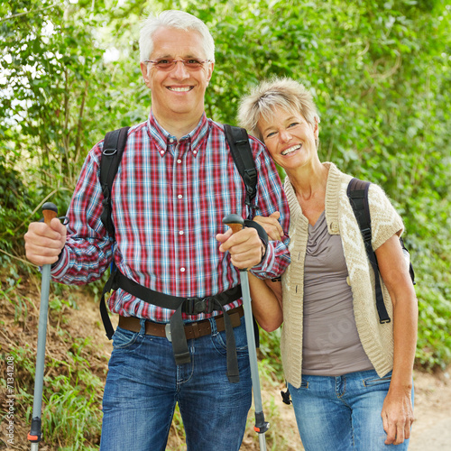 Paar Senioren beim Wandern im Sommer