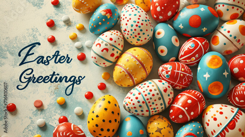 Bunte Ostereier verstecken sich unter weißen Eiern zu Ostern