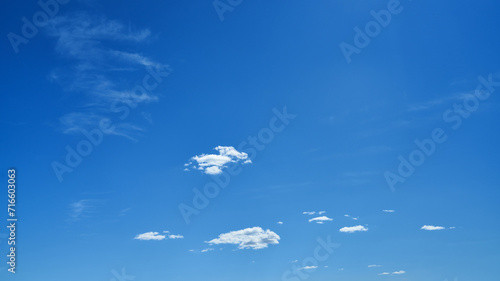 Clear blue sky with some small white clouds on sunny day