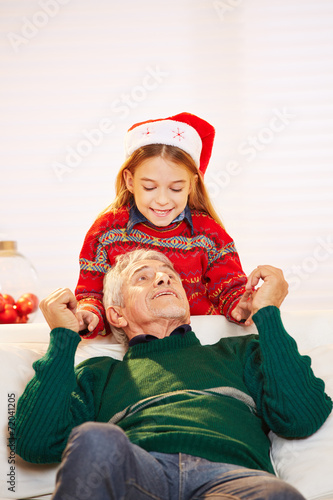 Kind mit Geschenken von Großeltern zu Weihnachten