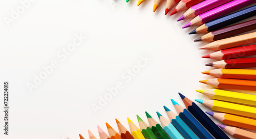 Many colorful pencils in rainbow colors forming circle (Generative AI)