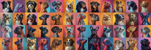 Diverse Breeds of Dogs Portrait Compilation on Dark Background