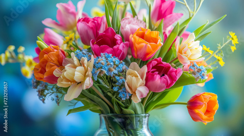 Colorful tulip flowers in vase for Valentines Day or Birthday Celebration