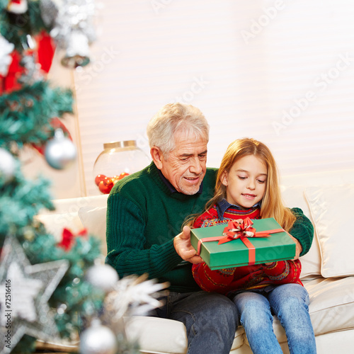Opa gibt Geschenk an Enkel zu Weihnachten