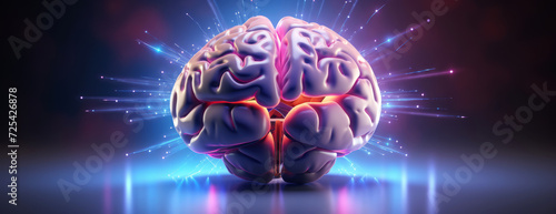 Stunning 3D digital illustration of a brain with vibrant lights and neural connections