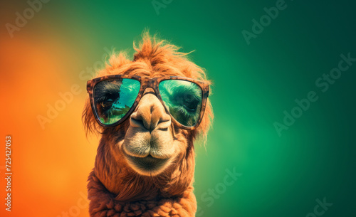 Cool alpaca wearing sunglasses on a blue background, funky and stylish