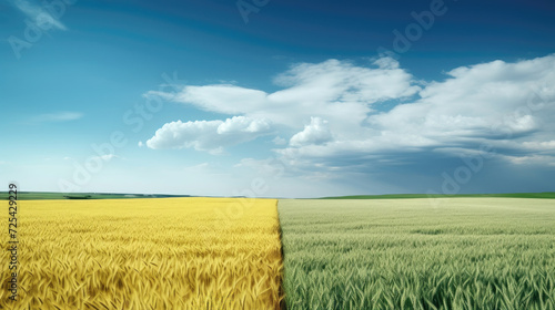 Panoramic view of a rural landscape with cloudy skies and open fields