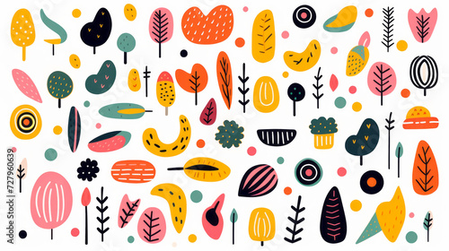 Seamless tilable retro abstract pattern with playful dots and colorful shapes
