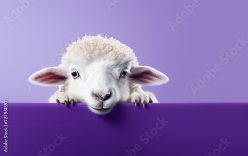 Adorable fluffy sheep floating in a clear sky on a white background, showcasing a whimsical and playful theme