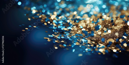Golden and blue glitter sparkling for festive background