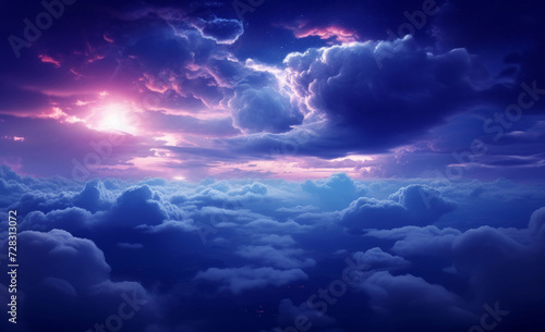 Dreamy pink and purple clouds illuminated by a serene sunset