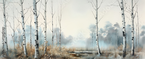 Panoramic view of a serene forest landscape with trees and a leafy ground