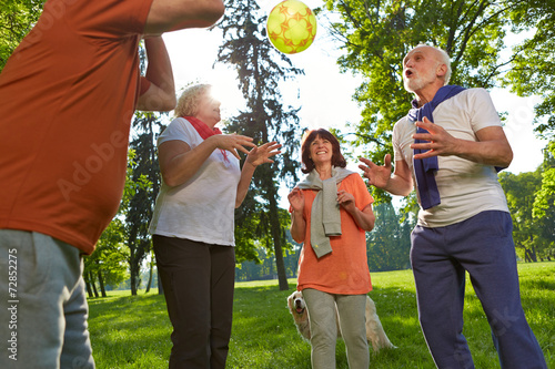 Gruppe Senioren spielt mit Ball