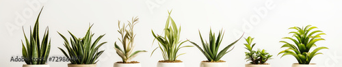 Assorted potted indoor plants lined up against a white background for a refreshing interior