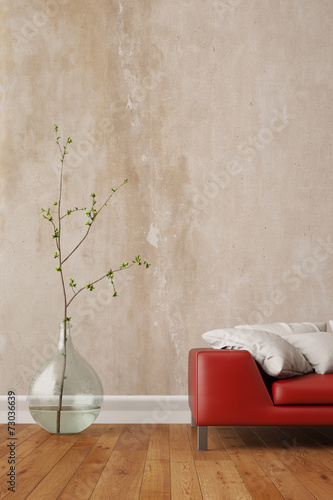 Wand im Zimmer einer leeren Wohnung mit Balkon