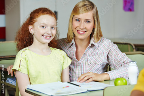 Lehrerin hilft Schülerin im Unterricht