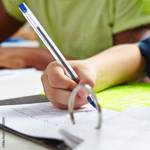 Hand mit Lupe sucht in Portraits als Umfrage und Marktforschung Konzept