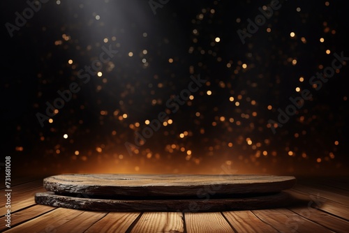 Sunset view over a wooden table with tropical beach and palm trees in the background