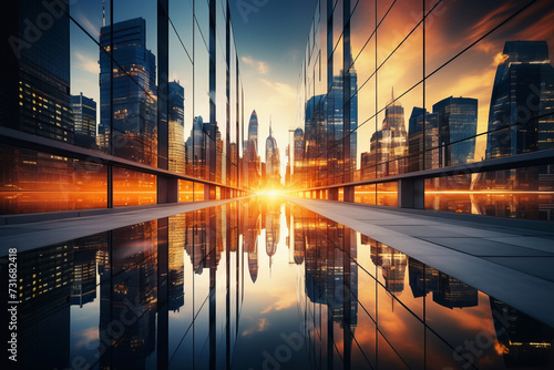 Stunning cityscape reflection on water at twilight with vibrant skies