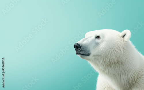 Majestic polar bear profile against a soft turquoise background