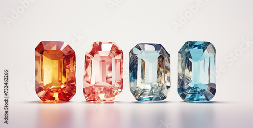 Glowing gemstones with vibrant colors and sharp facets on a dark backdrop
