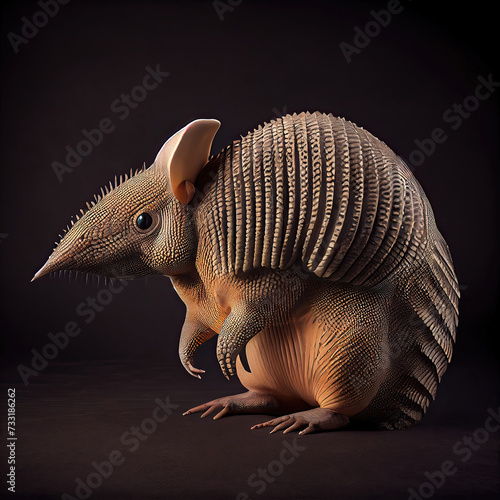 Portrait of a captivating armadillo showcasing detailed textured armor and distinctive features in a studio setting
