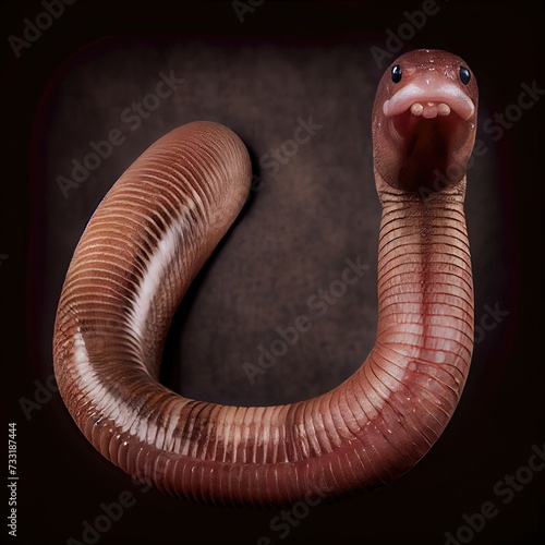 Detailed Earthworm Close-Up on Dark Background in Studio