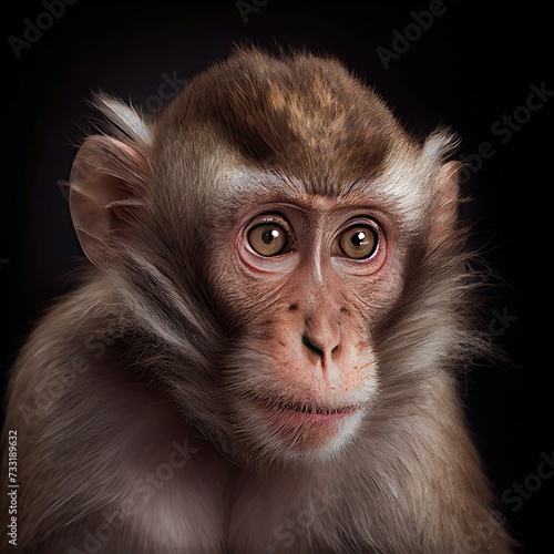 Portrait of a monkey in a studio setting showcasing detailed facial features with a professional and artistic touch. Captures the essence of primate expression.