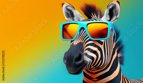 Stylish zebra wearing vibrant sunglasses on a colorful background