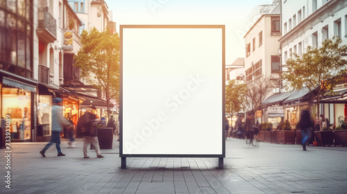 Blank billboard in a busy city street at twilight for outdoor advertising