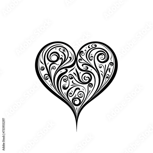 Abstract swirl heart design in black and white, ideal for tattoos and Valentine's Day