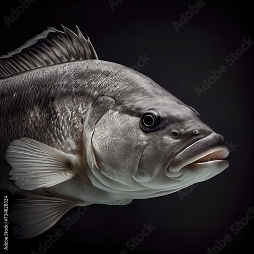 Close-Up Portrait of a Majestic Barramundi Fish Against Dark Background