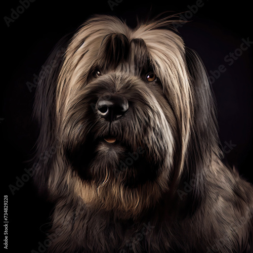 Briard Dog Studio Portrait With Intense Gaze and Dark Background