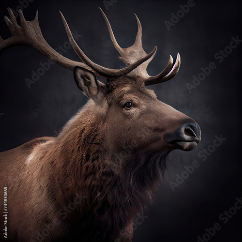 Majestic Elk Portrait with Impressive Antlers in Studio