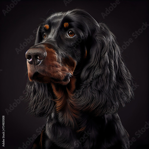 Majestic Gordon Setter Studio Portrait on Dark Background