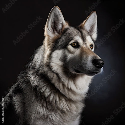 Majestic Tamaskan Dog Portrait In Professional Studio
