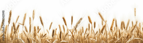 Golden wheat field panorama with ripe ears of wheat in sunlight