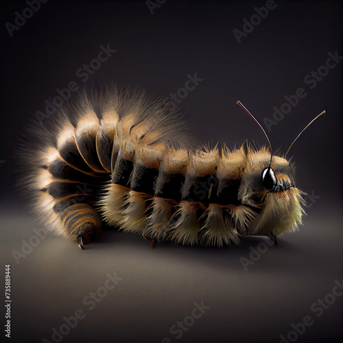 Detailed Caterpillar Portrait on a Dark Studio Background
