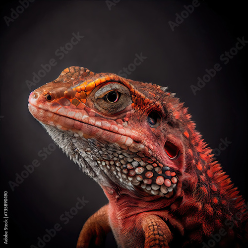 Captivating studio portrait of a colorful lizard with striking hues on a gradient background, showcasing the intricate details of its scales and vibrant eye-catching colors.
