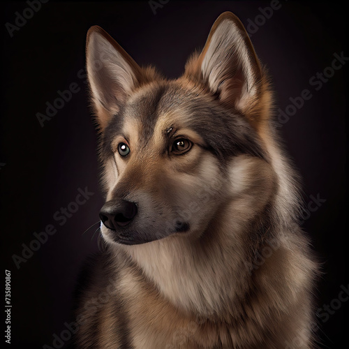 Majestic Tamaskan Dog Portrait In Professional Studio