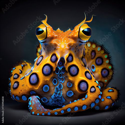 Blue-Ringed Octopus Studio Portrait with Vibrant Colors