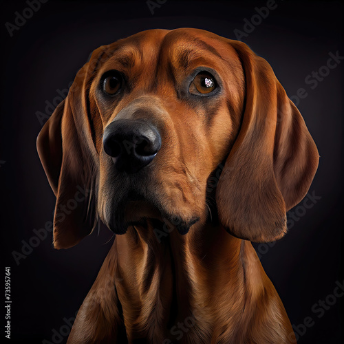 Professional Redbone Coonhound Studio Portrait with Dark Backdrop