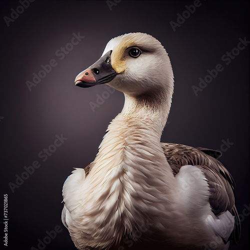 Elegant studio portrait of a goose showcasing detailed plumage and serene expression, ideal for wildlife enthusiasts and nature lovers