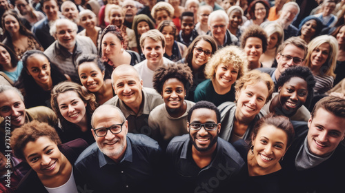 Diverse crowd of people standing together with focal individuals