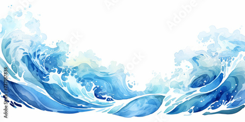 Majestic blue watercolor waves in dynamic motion for artistic marine background