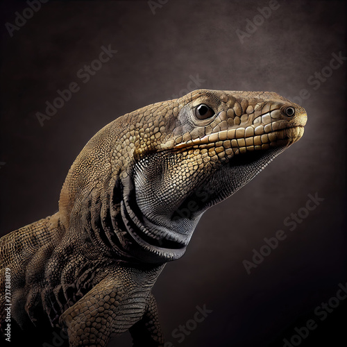 Detailed Black Dragon Lizard Portrait with Artistic Studio Lighting